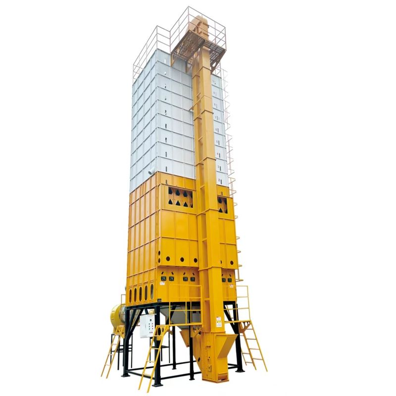 Después de un solo lote de grano en la máquina de secado, use las partes eléctricas juntas en funcionamiento para hacer que el grano circule ordenadamente en el secador, nuevamente por la estufa de combustión de aire caliente que quema combustible para producir aire caliente, bajo la acción de un solo ventilador eléctrico, deje que el aire pase por la capa de secado de flujo mixto del conducto de aire, penetrando y calentando el trabajo del grano, eliminando la humedad del grano a través del flujo de aire, el gas de escape con humedad se descarga de la máquina a través de la succión del ventilador a través de la tubería, y el grano seco es detectado por el medidor de humedad en línea automático para alcanzar el punto de humedad preestablecido, luego la máquina se detiene y se completa el secado.